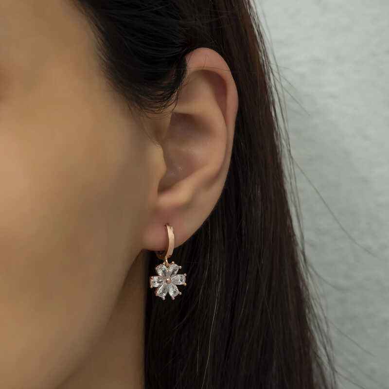 Boucles d'oreilles en argent plaqué rose pour femme White Flower