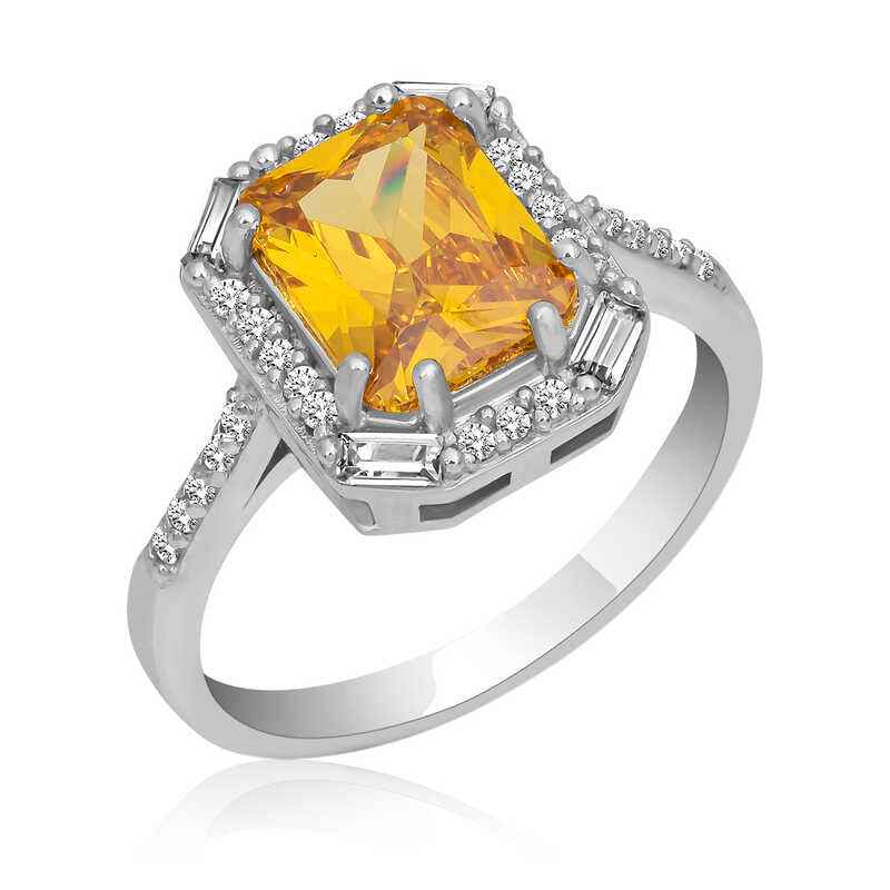 Bague en argent pour femme avec pierre jaune et forme carrée