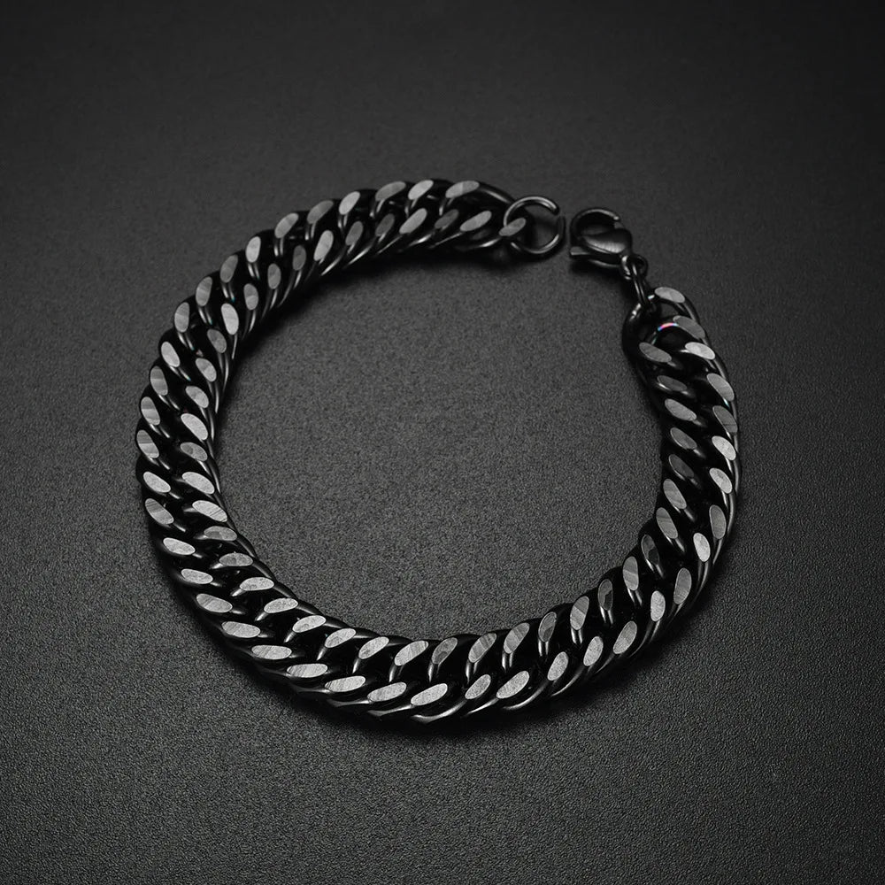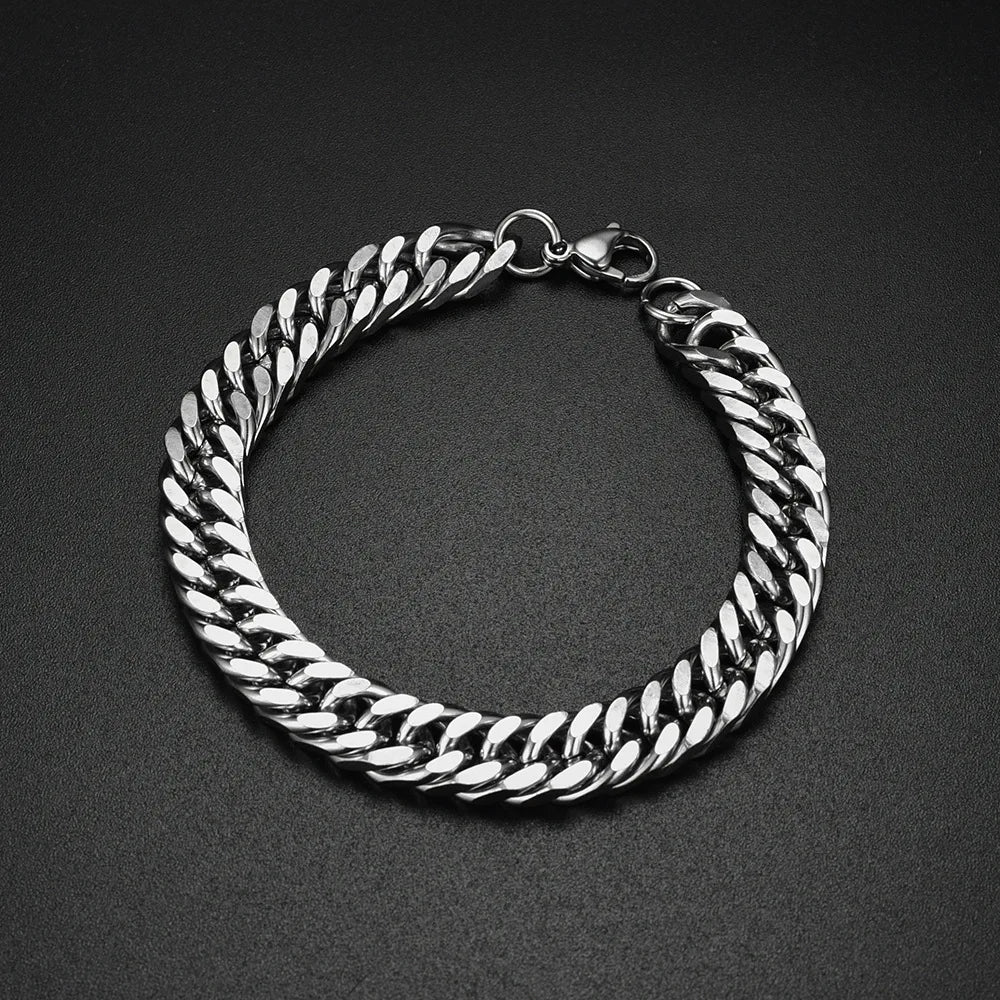 Details Material High-Grade Stainless Steel Style Hiphop/Rock, Cuban Link, Curb Chain, Statement Piece, Streetwear Features 10mm Width, Heavy-Duty Link Chain, Lobster Clasp. Tarnish-Resistant, Waterproof, Hypoallergenic. Fit Standard bracelet sizes available Gender Unisex (Men & Women)