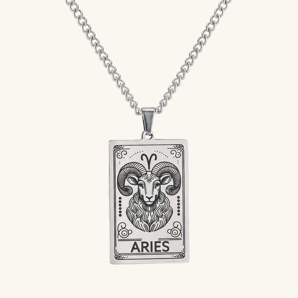 The square tarot inspired pendant features one of the 12 zodiac constellations making it a meaningful accessory that reflects personality and cosmic energy