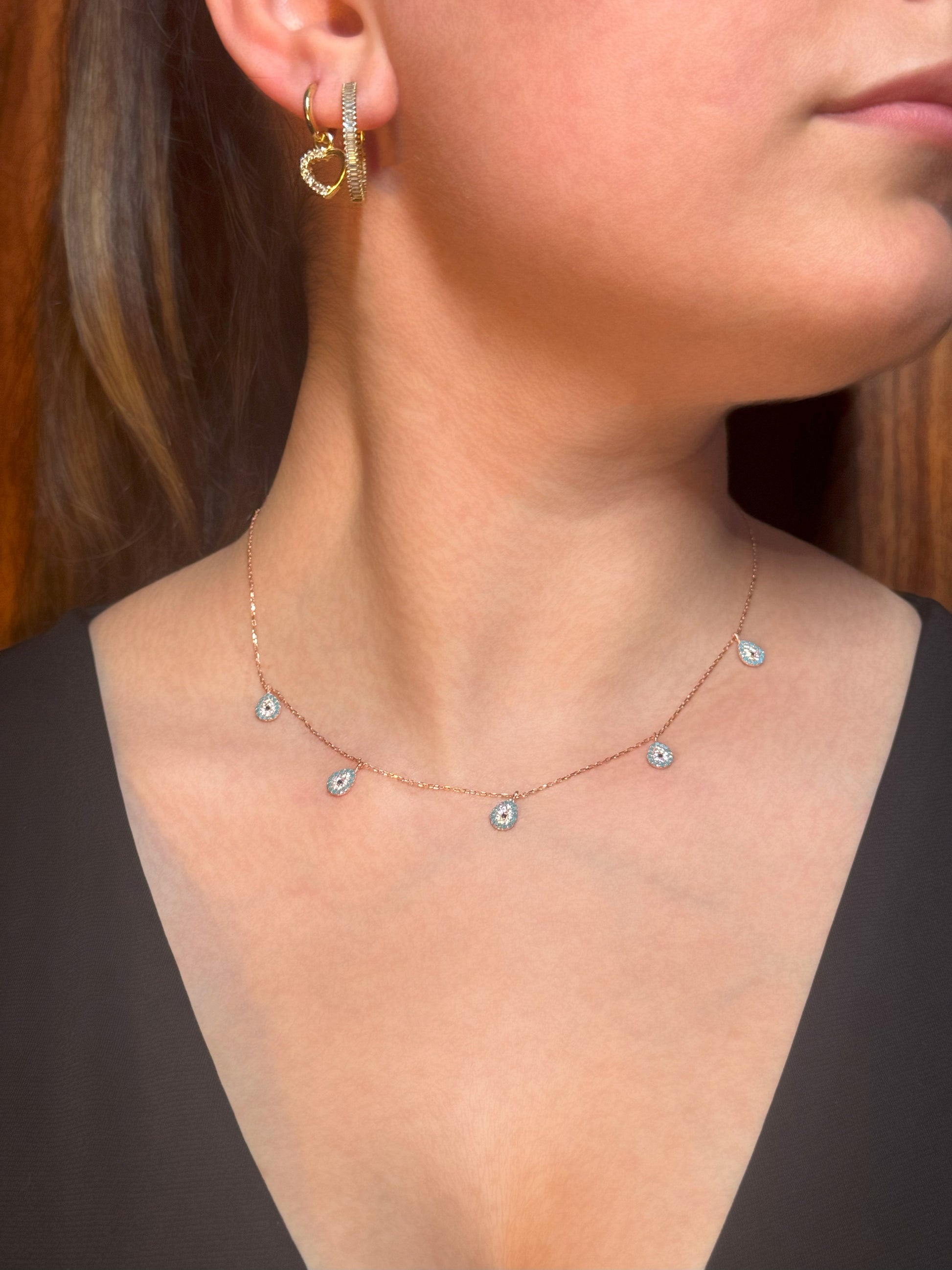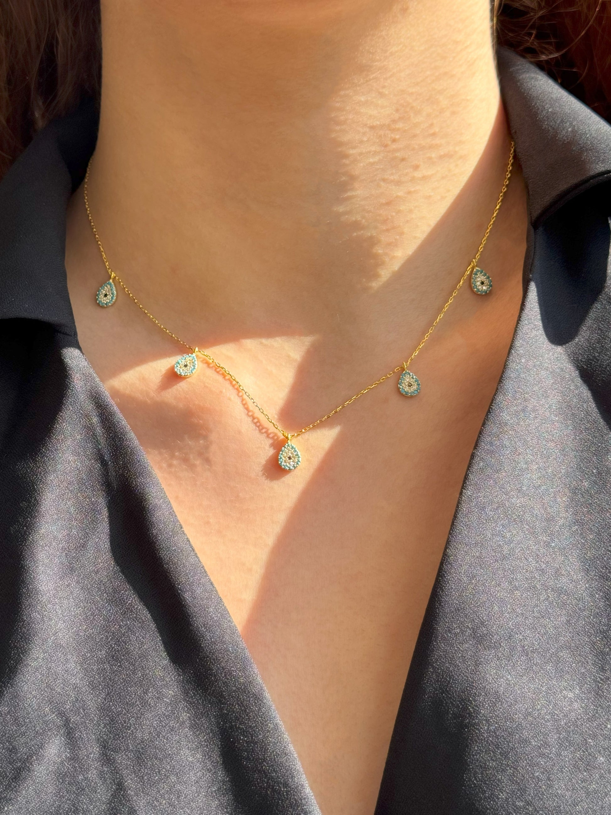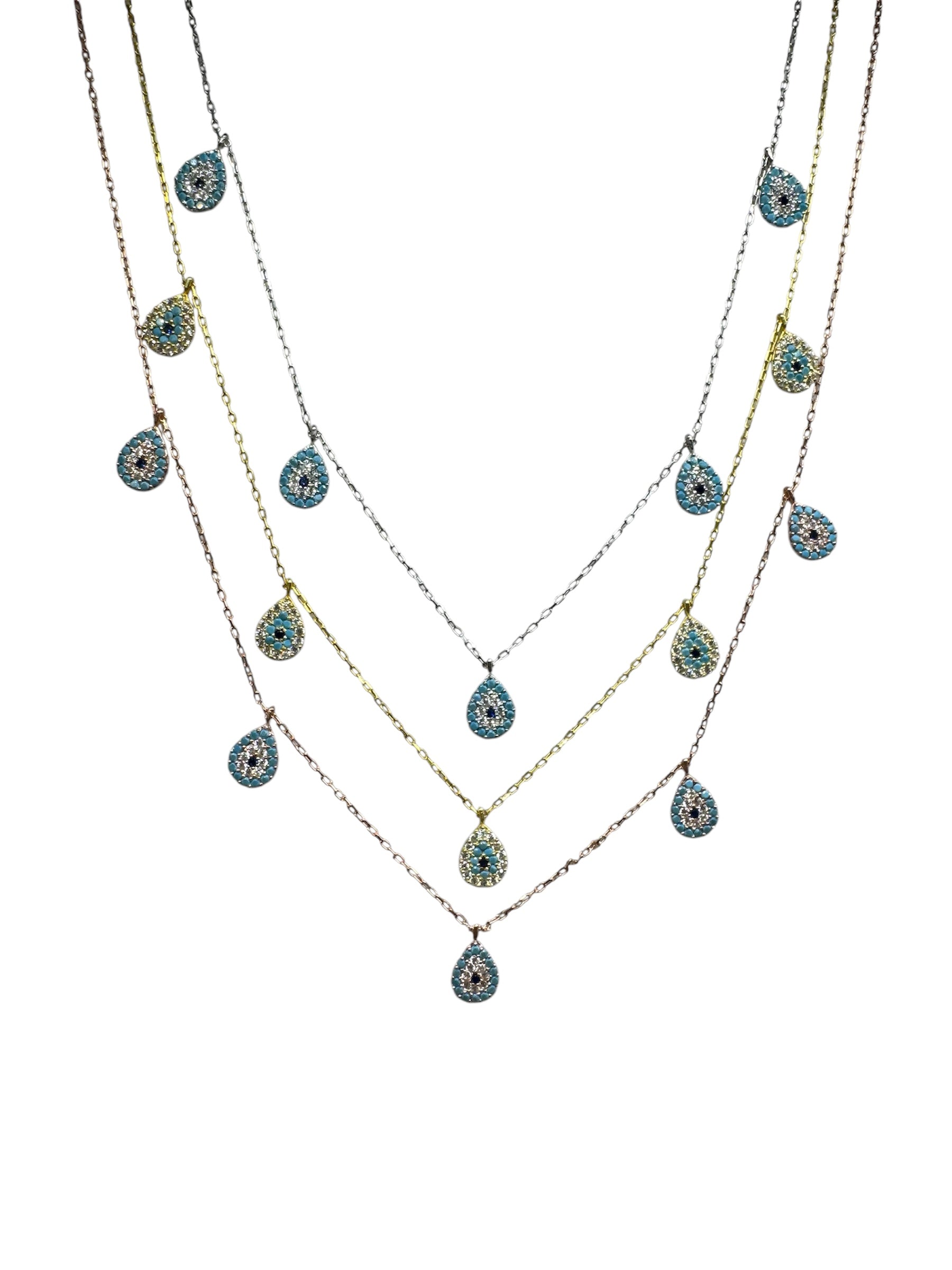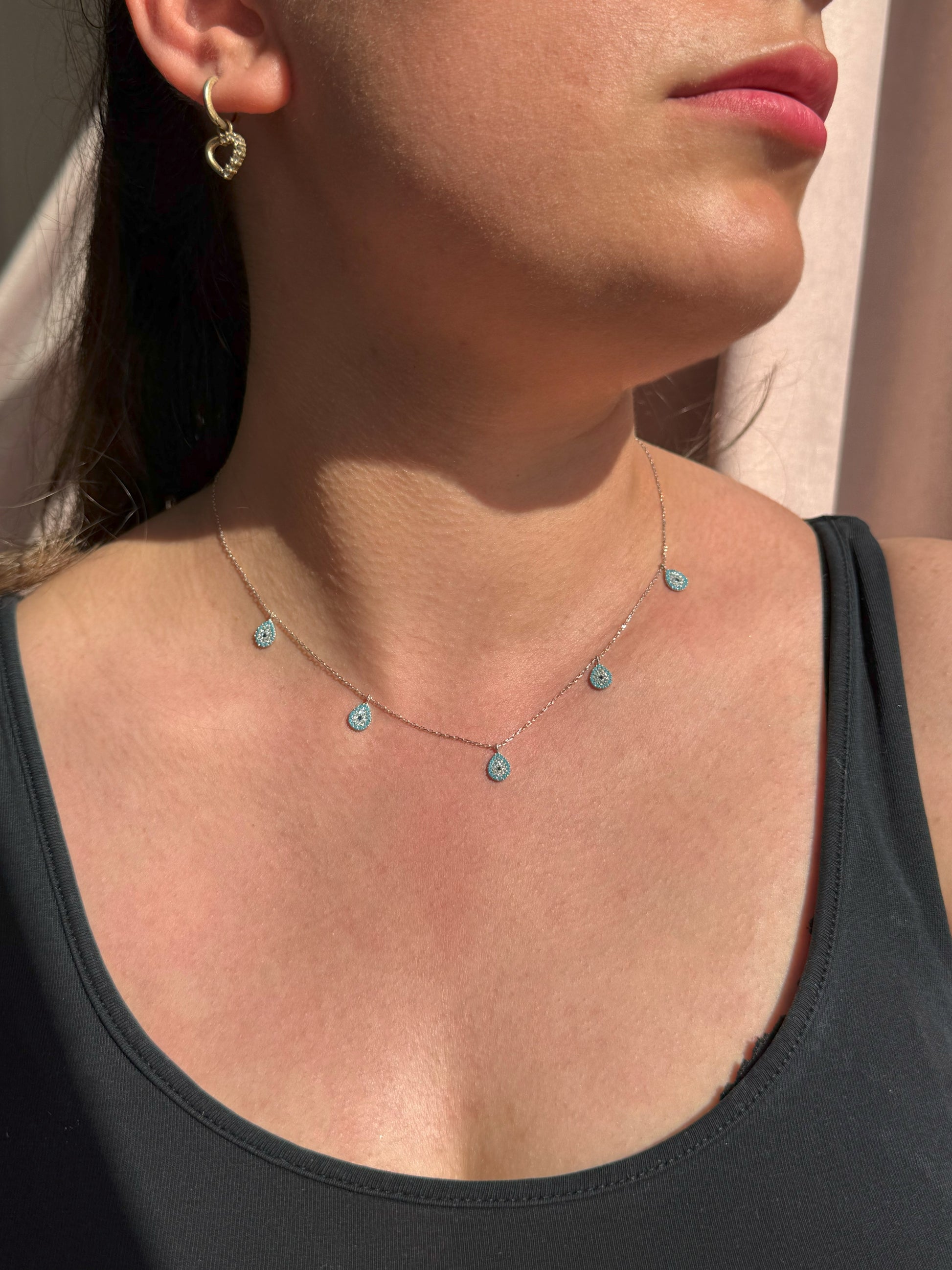 5 Turquoise White Navy Drop Silver Necklace