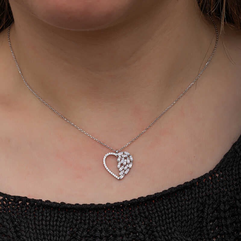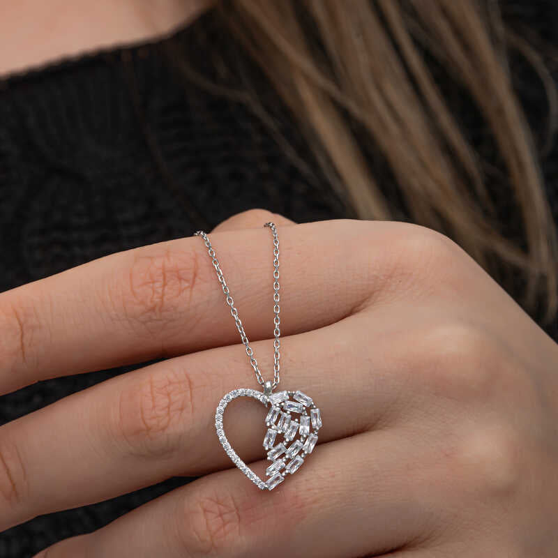The heart symbol has always been a symbol of unconditional love and romance. In religious teachings, the power of the heart is limitless because it is the home of the Creator and our true gateway to the universe. This elegant silver heart pendant is an excellent choice for special occasions like a birthday gift, Valentine's Day gift, or a gift for mothers. The silver heart women's pendant is crafted from 925 sterling silver. This pendant features rhodium plating. Silver women's pendant models with rhodium plating retain their shine for a long time. The stones on it are zircon and baguette. Like all our silver women's pendant models, the silver heart women's pendant is also handcrafted. Due to silver and precious stones, the stated average product weight may vary by ±10%.