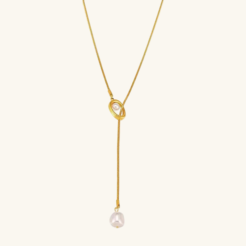 The pull out adjustable snake chain allows flexible styling while the simulated baroque pearl adds a graceful and timeless touch