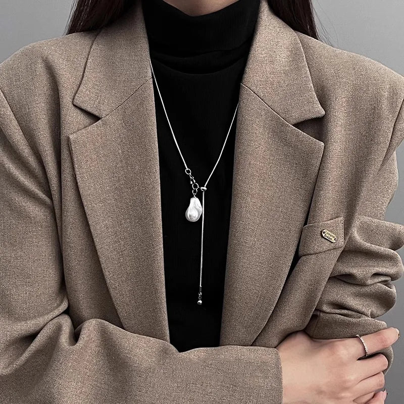 A stylish blend of elegance and modern fashion this baroque pearl pendant necklace is designed to complement both casual and chic outfits
