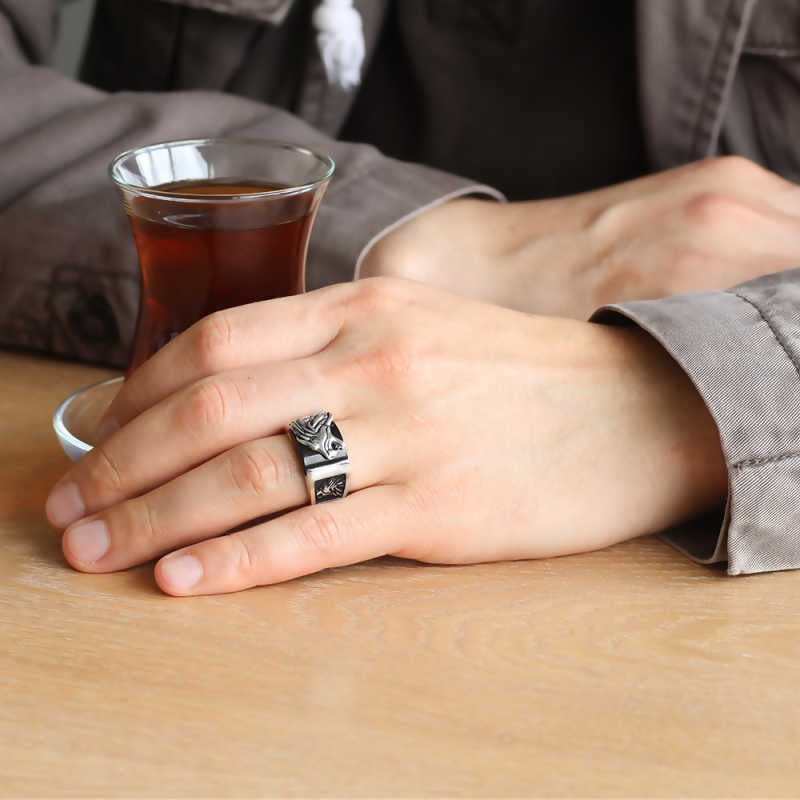 The lion symbolizes strength and nobility. How about making your loved ones happy with this ring inspired by this power? This elegant ring model is crafted from 925 sterling silver. The silver features an oxidized coating. Rings with an oxidized coating maintain their shine for a long time. Like all men's rings, this black stone lion figure men's silver ring model is also handcrafted. The stone on it is onyx. You can gift this stylish ring to yourself or your loved ones on birthdays, Father's Day, or special occasions. Due to silver and precious stones, the stated average product weight may vary by ±10%.
