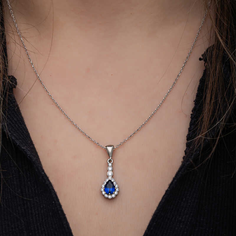 This women's necklace, composed of zircon stones set in silver, is a chic accessory you can wear at any time of the day. You can gift this necklace to yourself or your loved ones on birthdays, Mother's Day, or other special occasions. The drop zircon stone women's necklace is crafted from 925 sterling silver. The silver features rhodium plating. Silver women's necklaces with rhodium plating maintain their shine for a long time. Like all women's necklaces, this silver drop zircon stone model is handcrafted. Due to silver and precious stones, the stated average product weight may vary by ±10%.