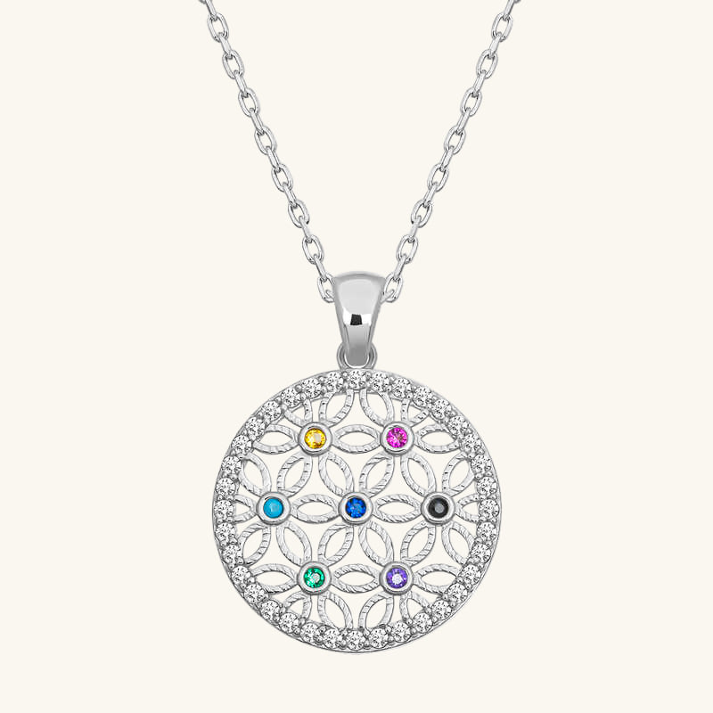 The Flower of Life is the single geometric shape that contains all the secrets and knowledge of creation. It is actually not a circle but a sphere. It should be considered in three dimensions, even multi-dimensionally. The Flower of Life contains Plato's five solids and Metatron's Cube. These shapes also construct all of existence. Considered one of the most powerful and special symbols in ancient teachings, the Flower of Life is the essence of the power of eternity, flawlessness, and perfection. You can delight your loved ones or yourself with this special necklace. The Flower of Life women's necklace model is crafted from 925 sterling silver. The silver features rhodium plating. Silver women's necklace models with rhodium plating maintain their shine for a long time and tarnish is delayed. The stones on the necklace are zircon. The average length of the silver chain is 45 cm. Like other silver women's necklace models, this Flower of Life model is handcrafted. Due to silver and precious stones, the stated average product weight may vary by ±10%.