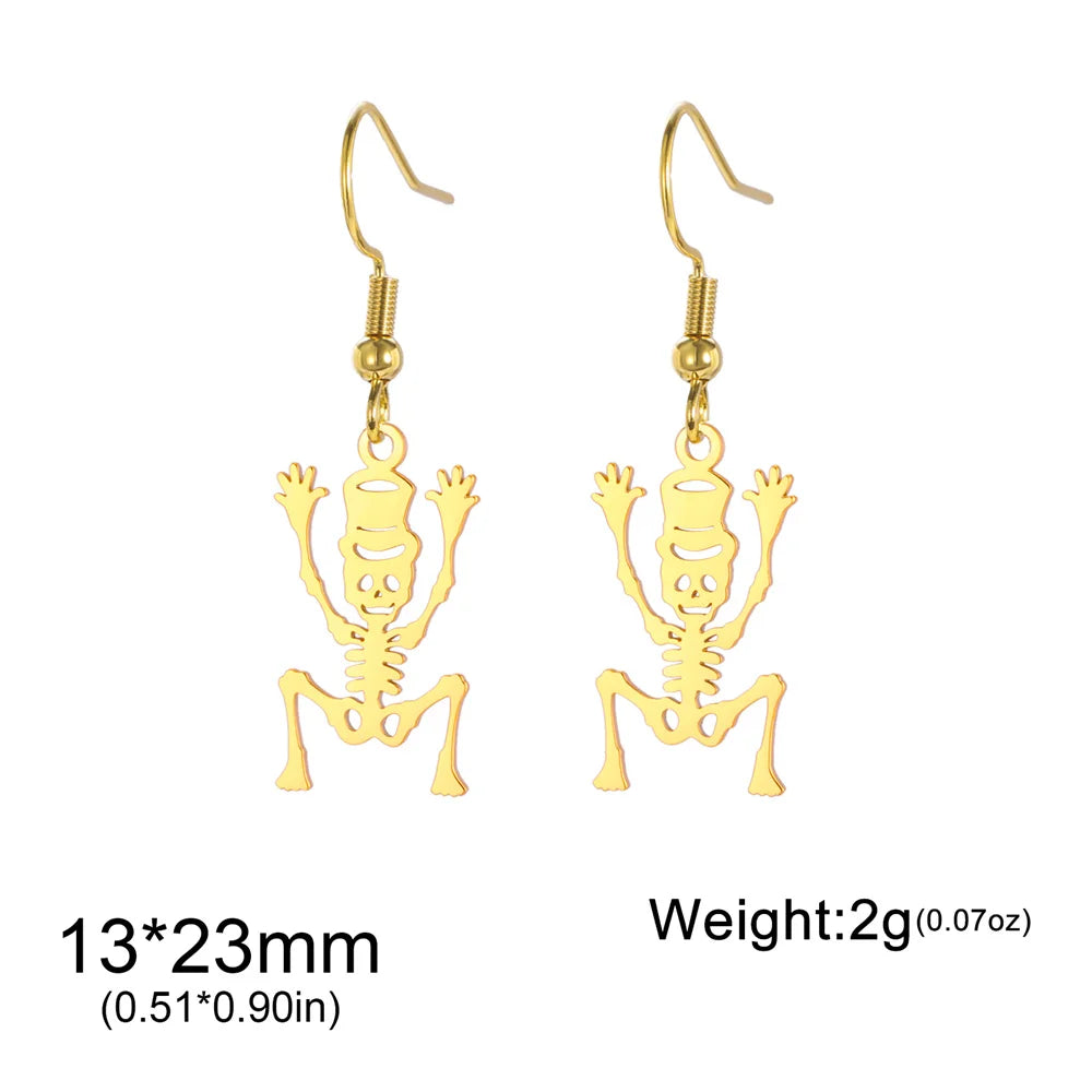 Material Solid 316L Stainless Steel (Available in Gold or Steel Color) Features Waterproof, Will Not Fade, Hypoallergenic, Lightweight Dangle Design Style Spooky Cute, Goth, Punk, Halloween Jewelry Gender Unisex