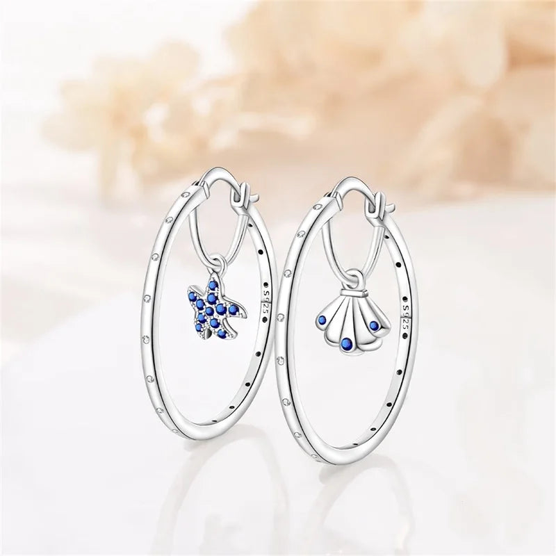 A celestial and ocean inspired design these double hoop earrings are crafted from authentic 925 sterling silver and accented with sparkling zircon stones