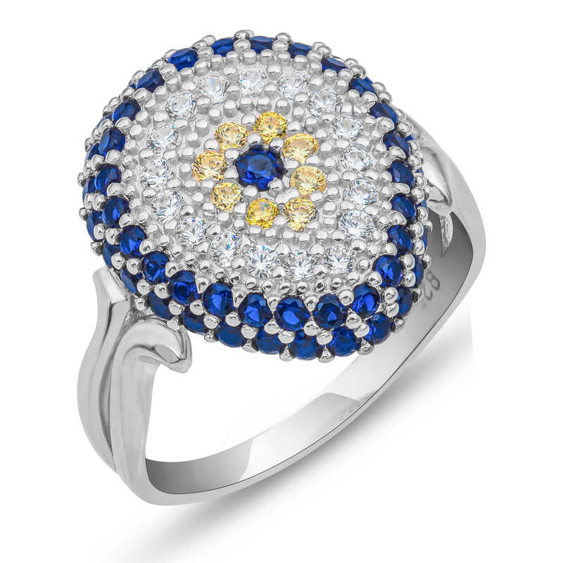 Elegant designs suitable for every age and lifestyle, this model will accompany you at any moment of the day. The evil eye bead will add beauty to your beauty and will also keep you away from the evil eye. This evil eye women's ring is crafted from 925 sterling silver. The silver features rhodium plating. Rhodium-plated silver women's ring models maintain their shine for a long time and their tarnishing is delayed. The stones on the ring are zircon. Like other women's ring models, the drop evil eye women's ring is handcrafted. Due to silver and precious stones, the stated average product weight may vary by ±10%.