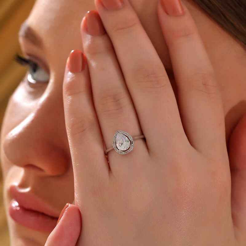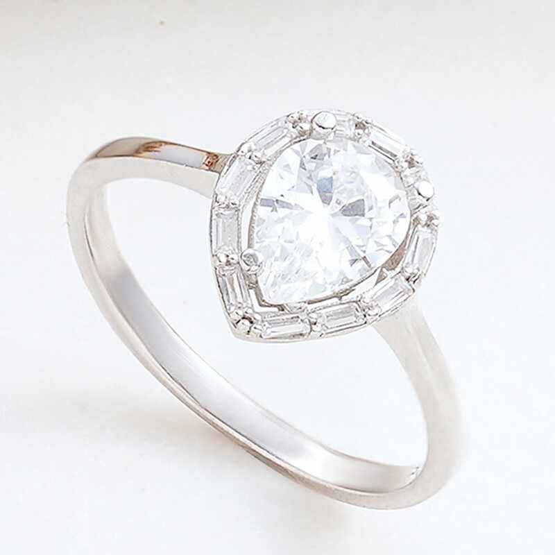 Drop Zircon Stone Women's Silver Ring