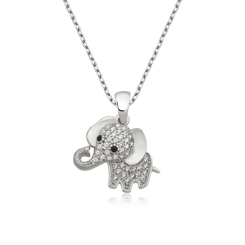 The elephant symbolizes wisdom, talent, good luck, and prosperity. This elegant necklace makes a perfect gift choice for birthdays, Valentine's Day, or Mother's Day. Crafted from 925 sterling silver, it features rhodium plating that ensures long-lasting shine and delays tarnishing. The chain length averages 45 cm / 17.7165 inches. The stones on this women's elephant necklace are zircon. Like all silver necklaces, this piece is handcrafted. Due to silver and precious stones, the stated average weight may vary by ±10%.