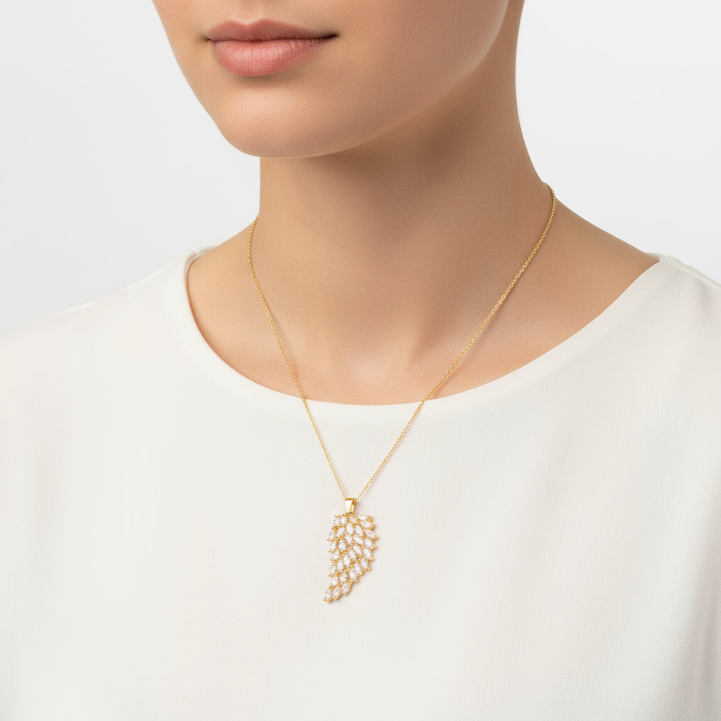 With this dazzling silver necklace adorned with zircon stones, you can give your wingless angel the one thing she's missing and bring her joy. If you say, "My love is an angel," this angel wing necklace is perfect for her. The angel wing silver necklace is not only an ideal gift for the love of your life but also highly suitable for your mother or sister. Delight your loved ones, whom you cherish and wish to make happy, with a gift worthy of angels. Crafted from 925 sterling silver, it features gold plating that maintains long-lasting shine and delays tarnishing. The stones on the silver angel wing women's necklace are zircon. All our necklace models are handcrafted. Due to silver and precious stones, the stated average weight may vary by ±10%.