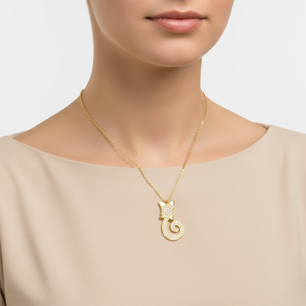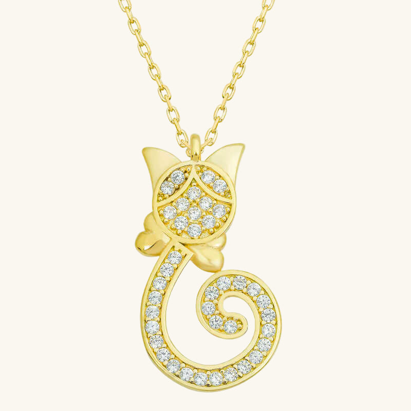 Cats, the adorable source of joy in our homes, are not only clean but also a symbol of innocence. They possess a noble and sensible personality, perfect intuition, and a rational sensitivity. Silver jewelry, one of the most preferred gift options for special occasions, is designed for those who want to make their loved ones happy and give them a gift they can carry with them at all times. You can gift this silver necklace model with a cat figure, a symbol of innocence, to your sister, lover, or friends. The zircon stone cat women's necklace model is crafted from 925 sterling silver. It features gold plating over the silver. Gold-plated silver cat necklace models maintain their shine for a long time and tarnish is delayed. All stones on the necklace are zircon. The average length of the silver chain is 45 cm / 17.7165 inches. Like all other silver women's necklace models, this silver women's cat necklace is handcrafted. Due to silver and precious stones, the stated average product weight may vary by ±10%.