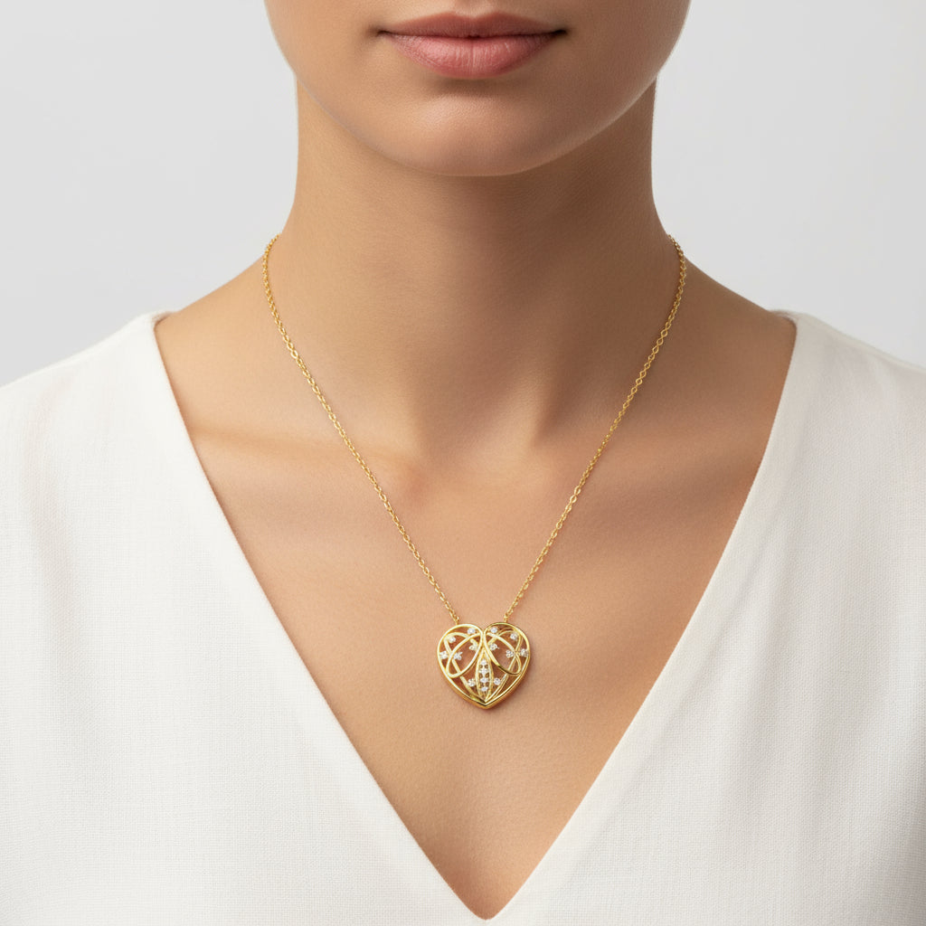 The heart symbol has always been a symbol of unconditional love and affection. In religious teachings, the power of the heart is limitless because it is the home of the Creator and our true gateway to the universe. This elegant silver domed heart women's necklace is an excellent choice for special occasions like a birthday gift, Valentine's Day gift, or a gift for mothers. The silver heart women's necklace is crafted from 925 sterling silver. This necklace features a gold plating. Gold-plated silver women's necklace models retain their shine for a long time. The stones on it are zircon. Like all our silver women's necklace models, the silver domed heart women's necklace model is also handcrafted. Due to silver and precious stones, the stated average product weight may vary by ±10%.
