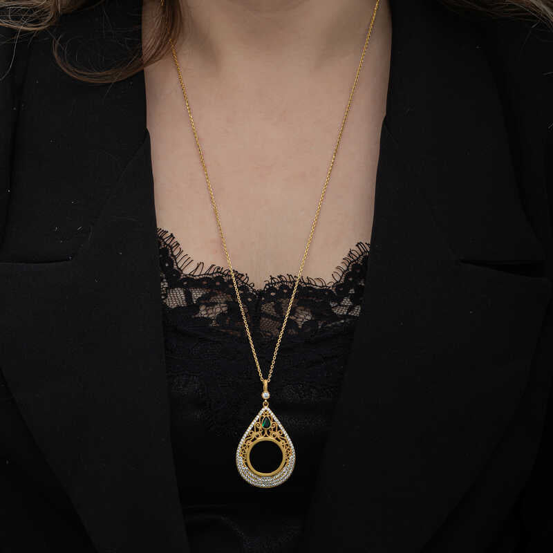Let your love come to life on the skin of the woman you adore with this gold women's necklace model, featuring a drop form pattern that expresses elegance. Adorn your loved one's neck with love with this women's necklace model, which can also be chosen by young lovers and those who feel young on special days. This women's necklace, which you and your loved ones will enjoy wearing, will be one of the most beautiful gifts for your beloved. This women's necklace model is crafted from 925 sterling silver. It is gold plated over silver. Gold-plated silver women's necklace models maintain their shine for a long time and tarnish is delayed. The white stones on the necklace are zircon. Like all women's necklace models, this silver women's necklace model is handcrafted. Due to silver and precious stones, the stated average product weight may vary by ±10%.