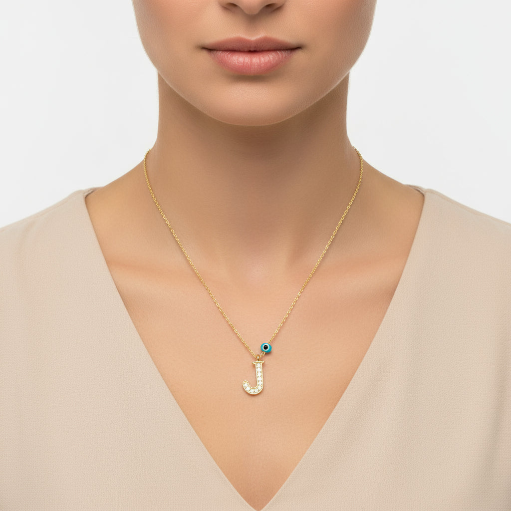 Gold Plated Nazar J Letter Women's Silver Necklace