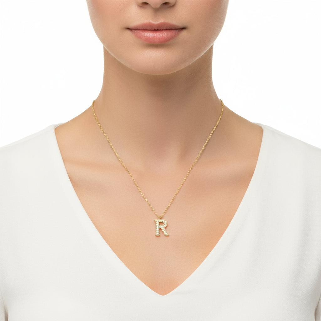 Gold Plated R Letter Women's Silver Necklace