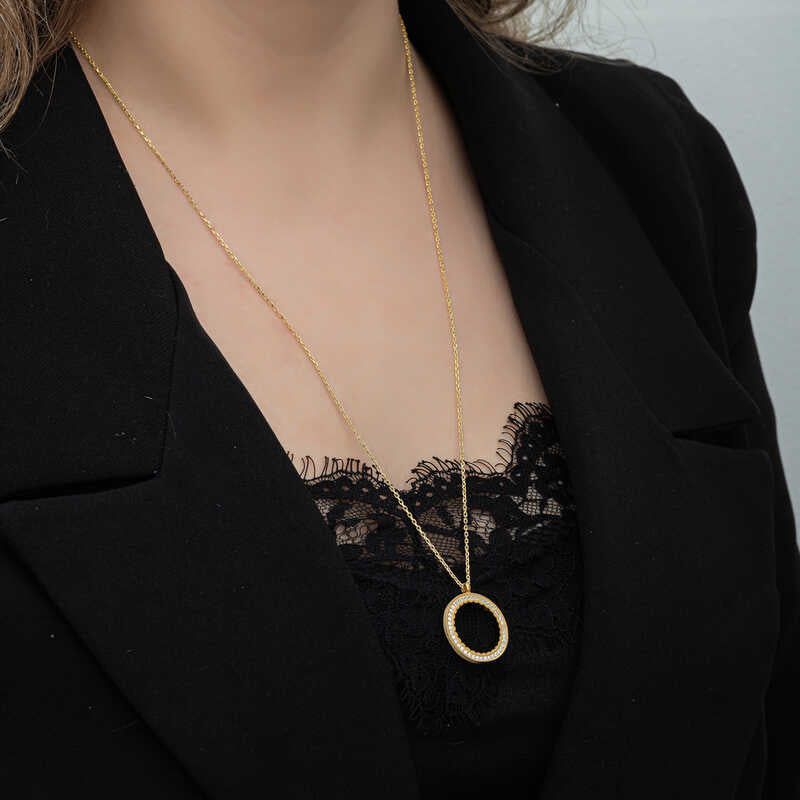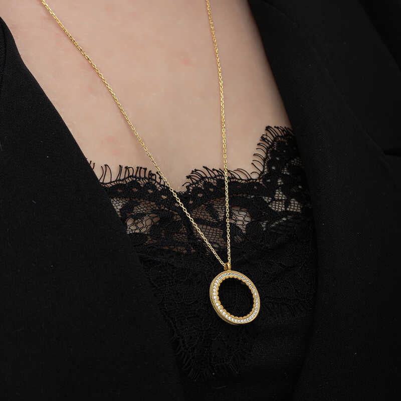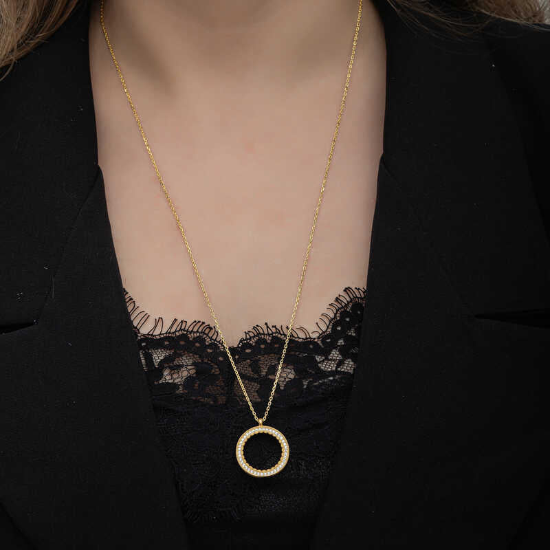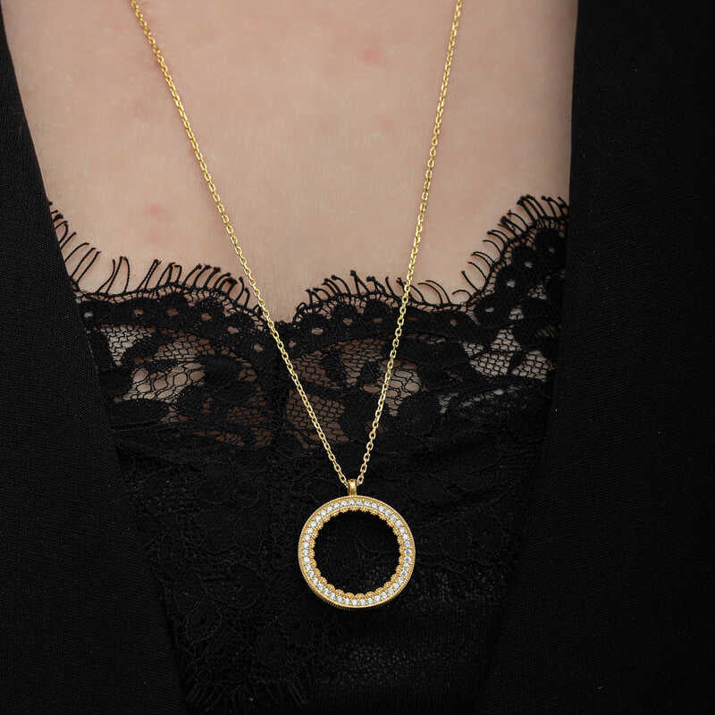 Let your love come to life on the skin of the woman you adore with this silver round quarter gold insertable necklace that expresses elegance with its circular pattern. Adorn the neck of your loved one with this women's necklace model, a choice for young lovers and those who feel young at heart on special days. This women's necklace, which you and your loved ones will enjoy wearing, will be one of the most beautiful gifts for your beloved. This women's necklace model is crafted from 925 sterling silver. It features a gold plating over silver. Silver women's necklaces with gold plating maintain their shine for a long time and tarnish is delayed. The white stones on the necklace are zircon. Like all women's necklace models, this gold plated round quarter gold insertable women's silver necklace is also handcrafted. Due to silver and precious stones, the stated average product weight may vary by ±10%.