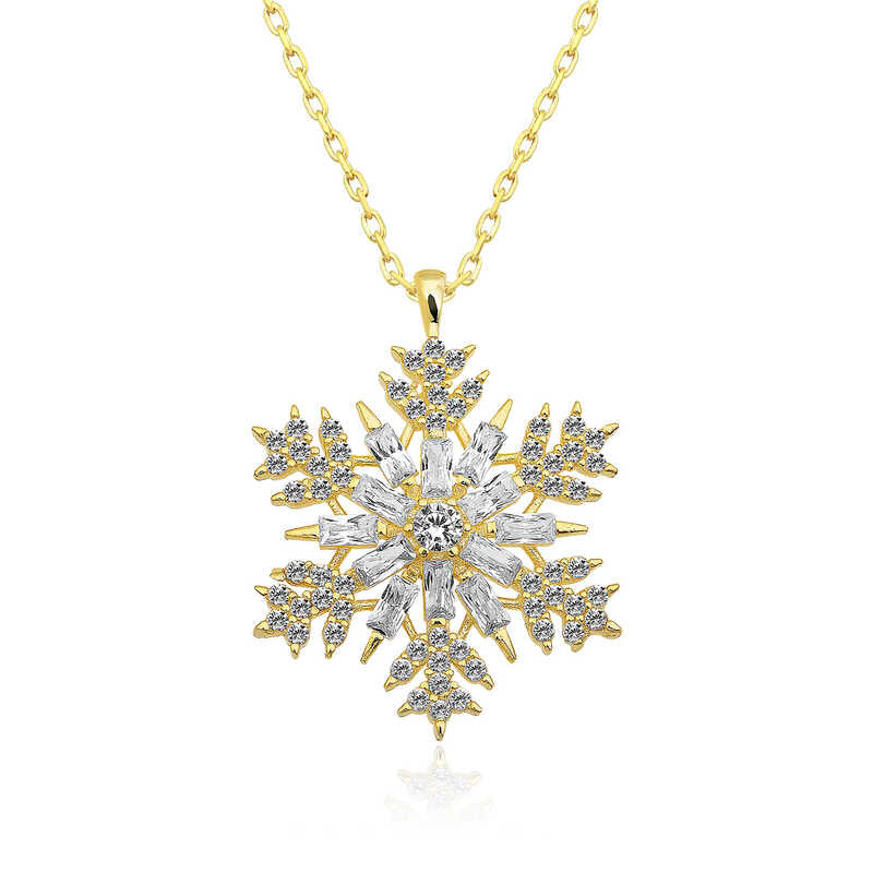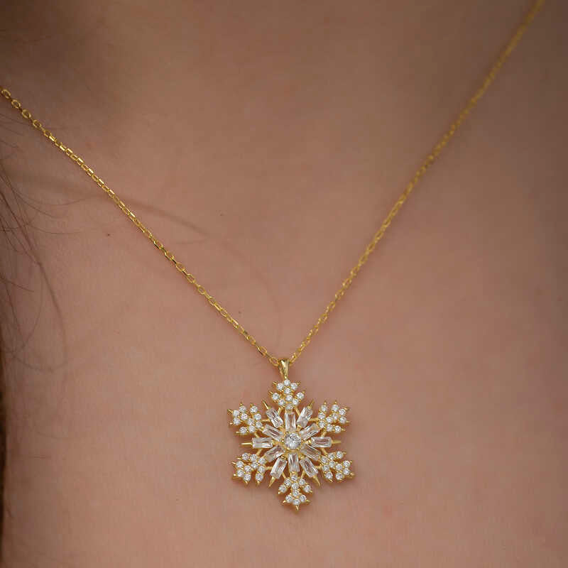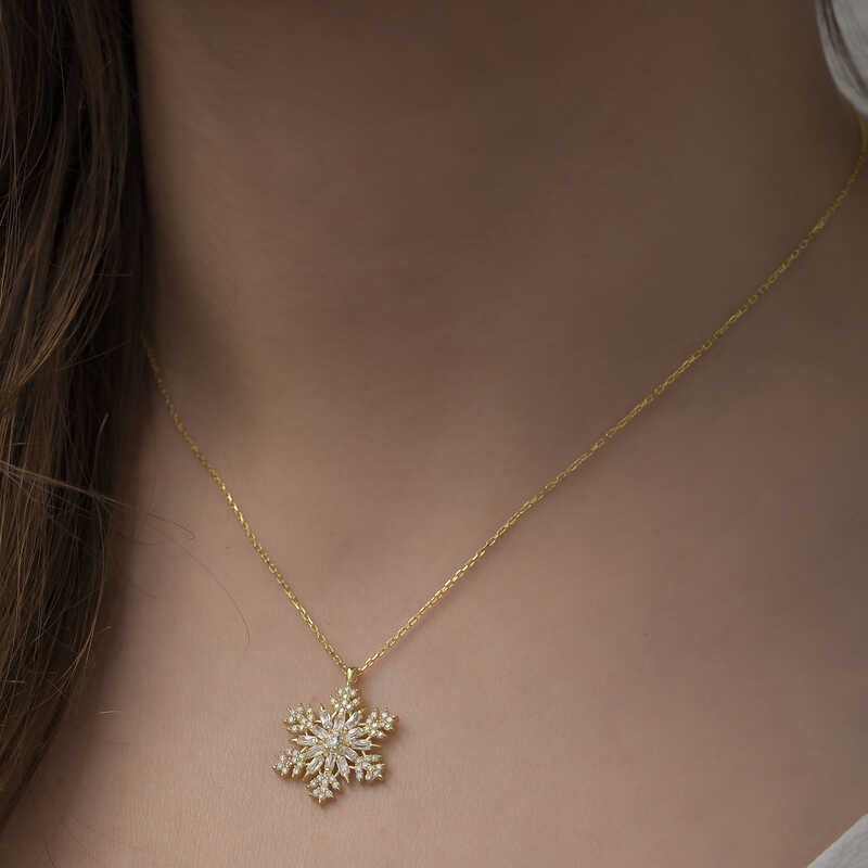 Inspired by the brilliance and clarity of snowflakes, this piece is specially designed for women. Just as every snowflake is unique and precious, so too are women, making this pendant a symbol of their individuality. It also represents the idea that people, like snowflakes, can live happily without harming one another. This elegant pendant makes a perfect gift for birthdays, Valentine's Day, or Mother's Day. Crafted from 925 sterling silver with gold plating, it maintains its shine for a long time and resists tarnishing. Like all silver women's pendants, this gold-plated snowflake pendant is entirely handmade. Due to silver and precious stones, the stated average weight may vary by ±10%.