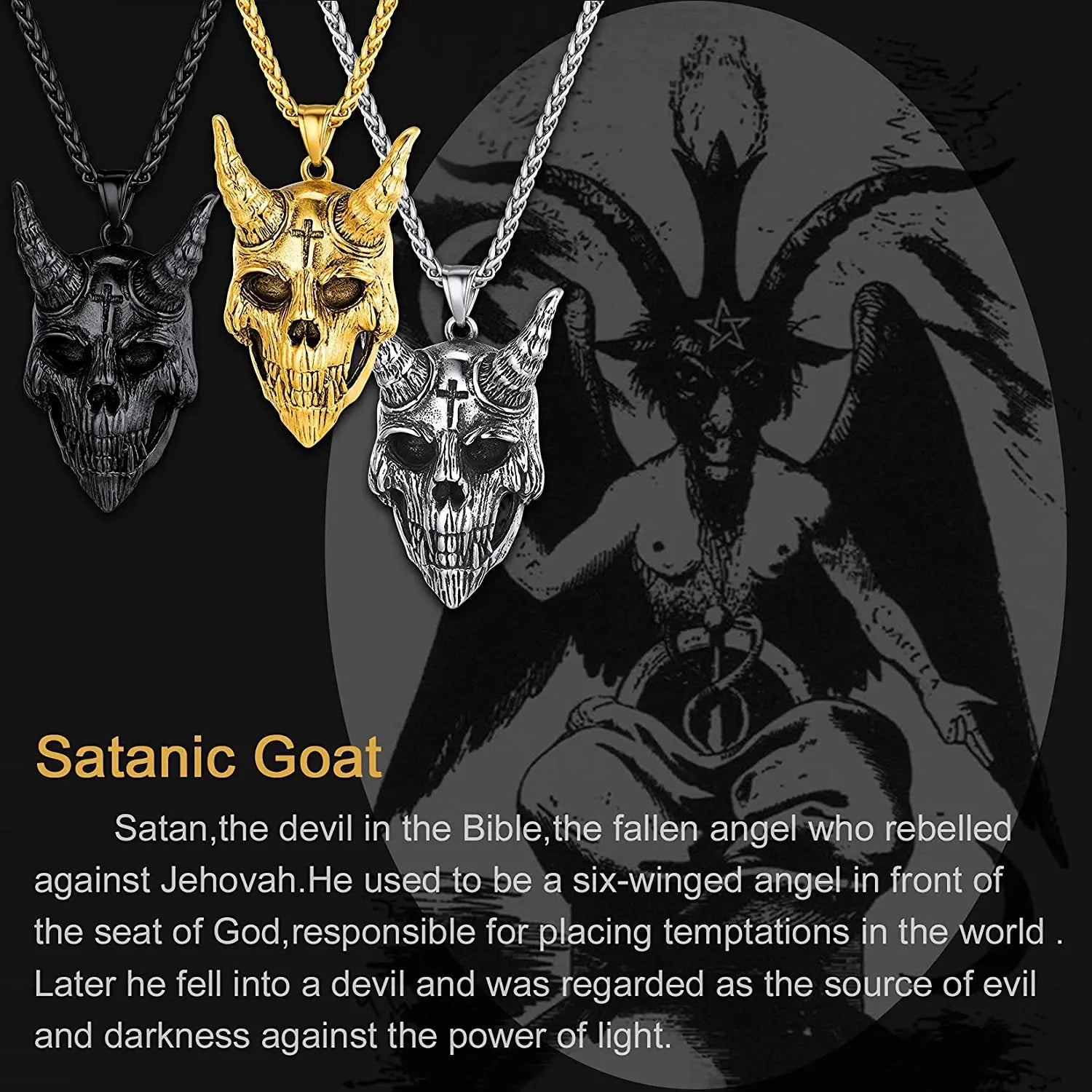 This is not for the faint of heart. The Baphomet is one of history's most powerful and profound symbols, representing the balance of opposites, the pursuit of hidden knowledge, and the ultimate rebellion against conformity. This necklace is a bold and unapologetic statement for the free-thinker, the occultist, and the modern-day heretic who finds wisdom in the shadows.
