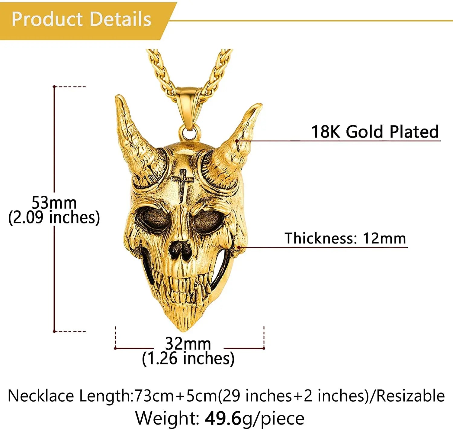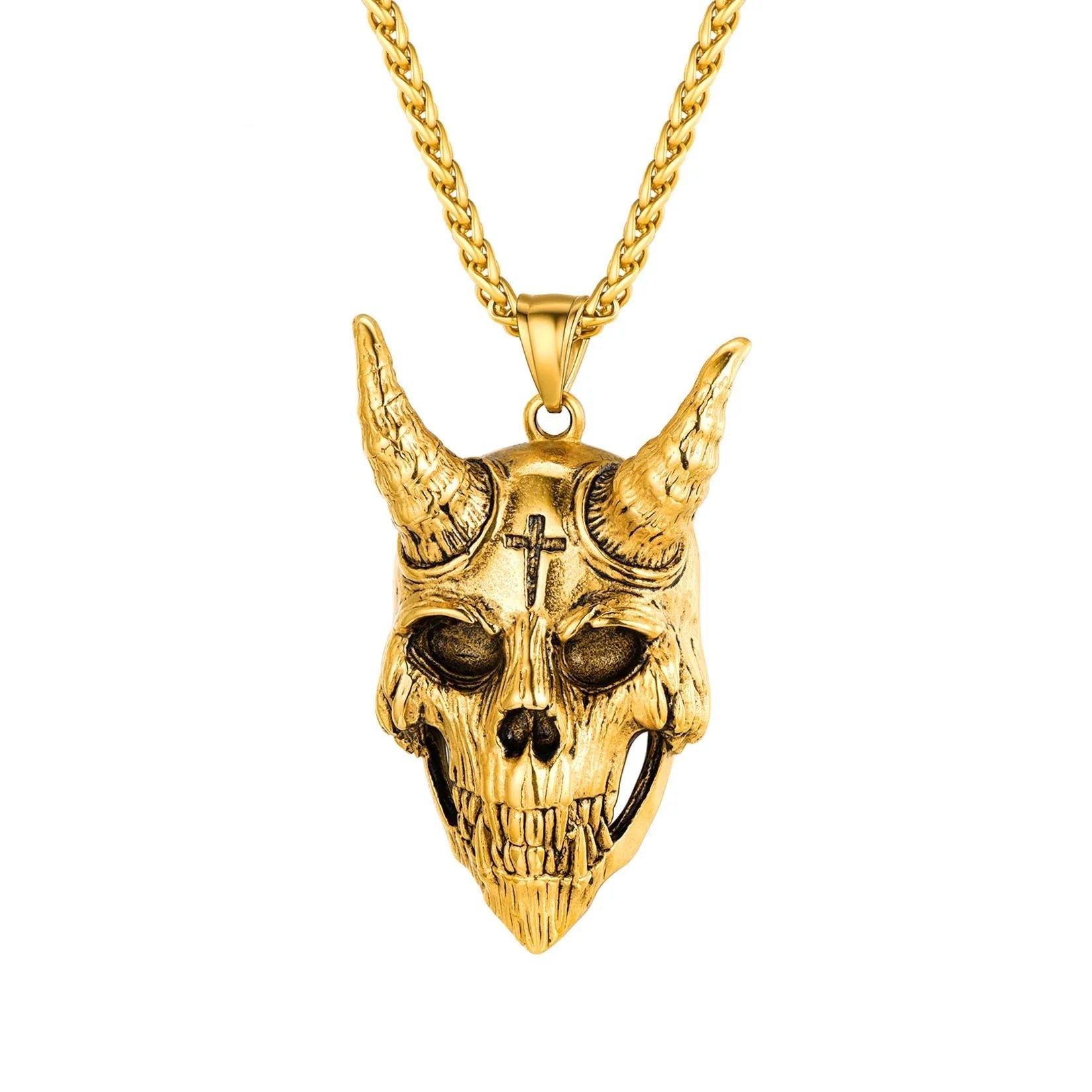 Material Solid 316L Stainless Steel with a Polished Finish Features Waterproof, Tarnish-Free & Hypoallergenic Style Neo-Gothic, Occult, Punk, Biker, Amulet Chain Stylish and Durable Wheat Chain Gender Unisex