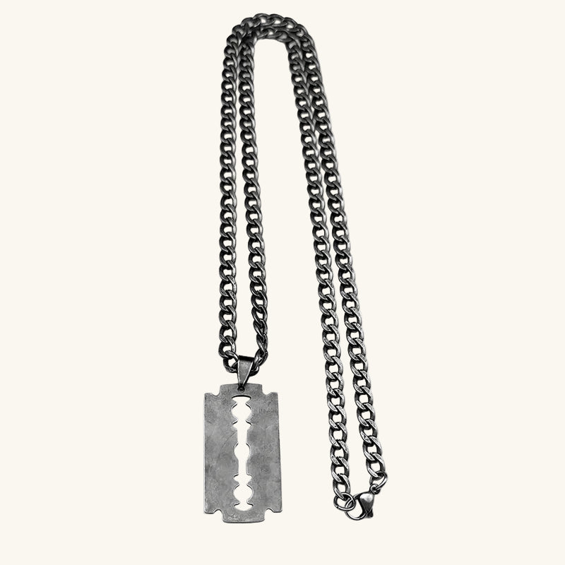 This isn't just a necklace. It's an attitude. The razor blade is a timeless icon of rebellion, a symbol of a sharp, unapologetic, and cutting-edge style. This piece is for the outsiders, the artists, the rebels—those who define their own style and live by their own rules.