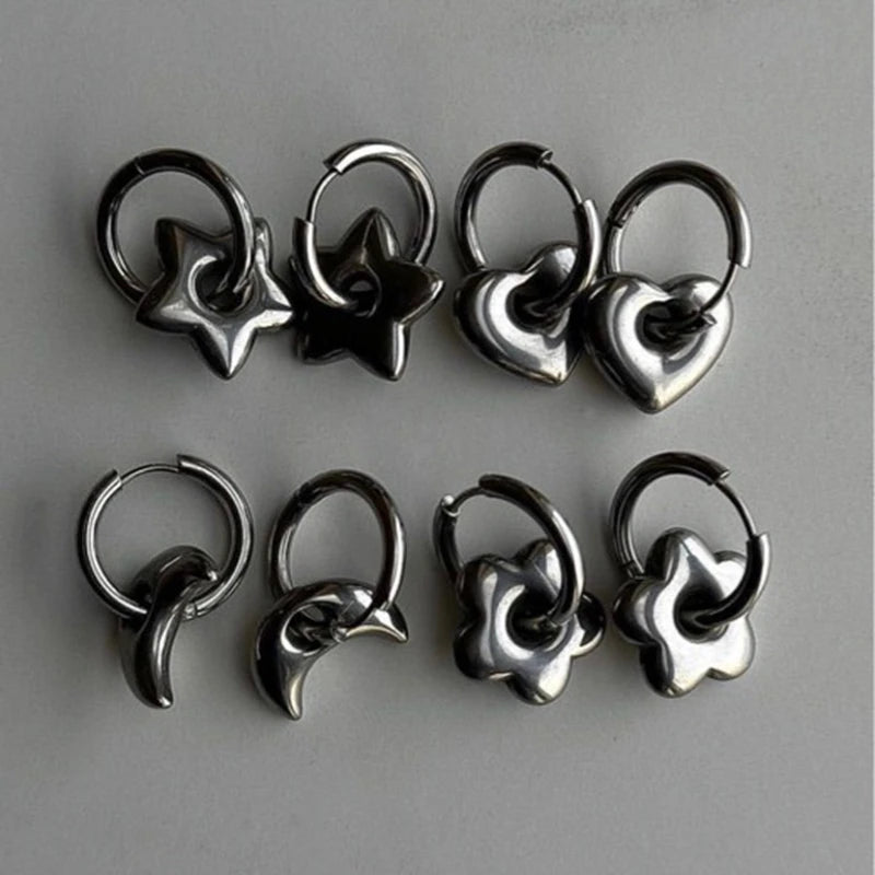 Featuring heart and star charms they capture the playful rebellious spirit of Y2K fashion while staying versatile for everyday styling