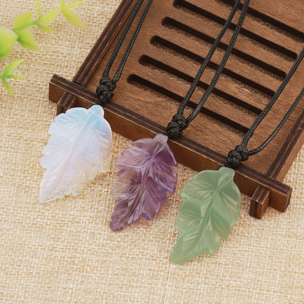 A meaningful and artistic design this pendant necklace is hand carved from natural semi precious stone into a delicate leaf shape