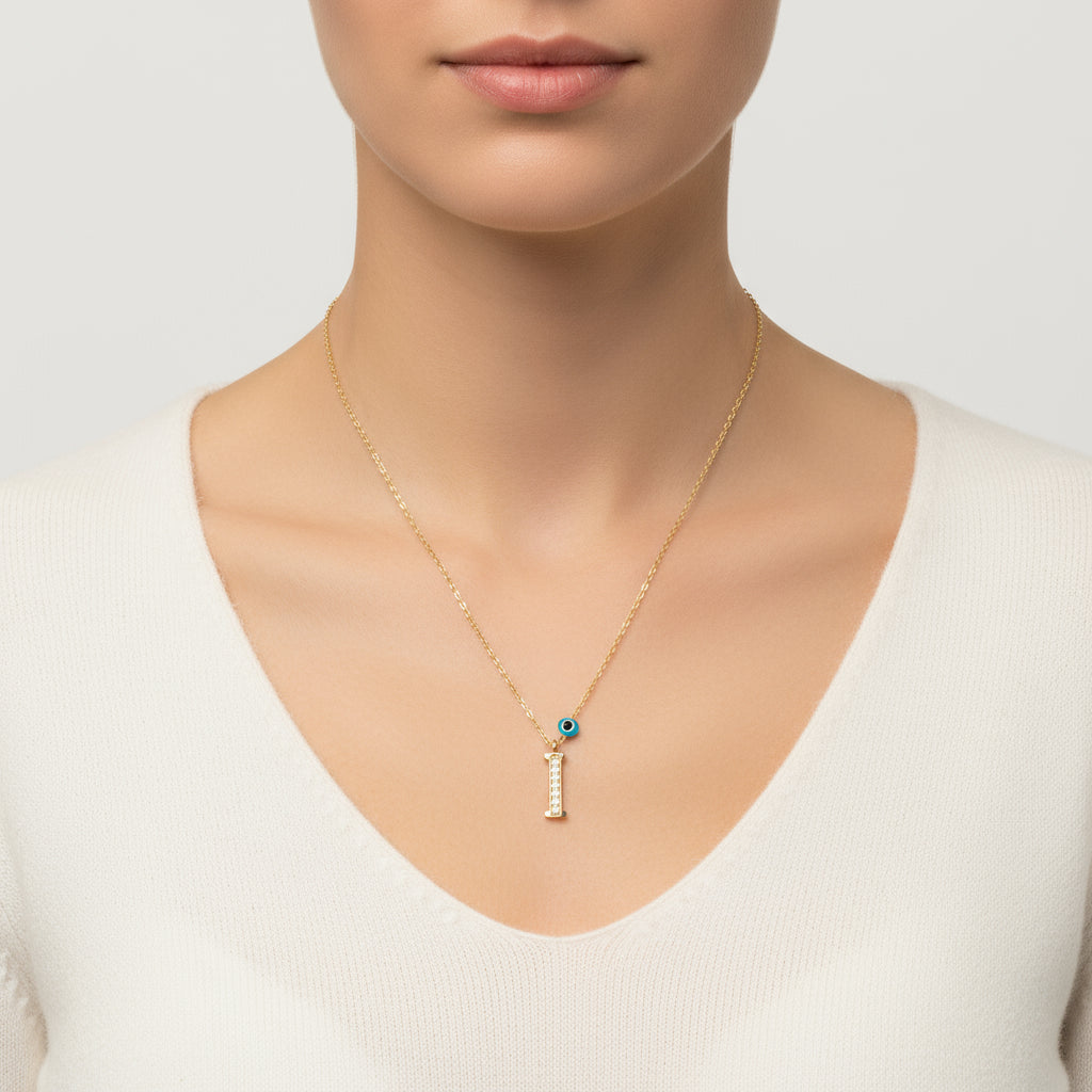 With silver letter necklaces, keep your loved ones close to you... Adorn your beloved's neck with love with this special necklace model, perfect for young lovers on special occasions. This silver letter necklace, which you and your loved ones will enjoy wearing, will be one of the most meaningful gifts. The evil eye letter women's necklace model is crafted from 925 sterling silver. It features gold plating over the silver. Gold-plated silver women's necklace models maintain their shine for a long time. Like all our products, this silver women's letter necklace model is also handcrafted. Due to silver and precious stones, the stated average product weight may vary by ±10%.