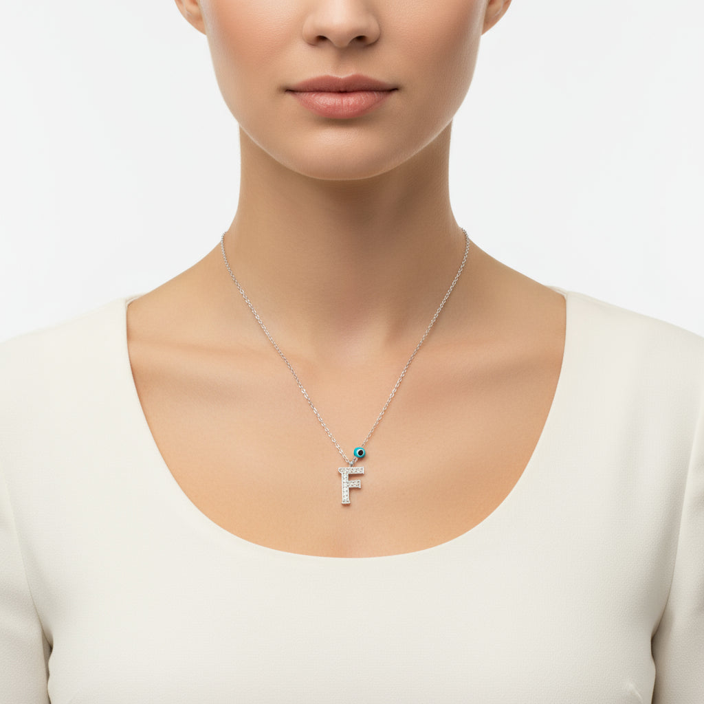 Keep what's precious to you close with silver letter necklaces... Adorn your loved one's neck with love using this special necklace model, perfect for young lovers on special days. This silver letter necklace, which you and your loved ones will enjoy wearing, will be one of the most meaningful gifts. The evil eye letter women's necklace model is crafted from 925 sterling silver. The silver features rhodium plating. Rhodium-plated silver women's necklace models maintain their shine for a long time. Like all our products, the silver women's letter necklace model is also handcrafted. Due to silver and precious stones, the stated average product weight may vary by ±10%.