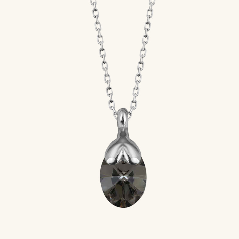 Oval Swarovski Crystal Stone Women's Silver Necklace