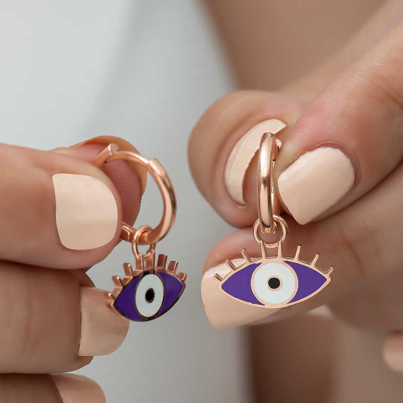 This collection features the most special earring models, designed fashionably for women who care about their appearance. With earrings that cater to different styles and uses, you can create a dazzling and enchanting look. The phosphorescent purple eye earrings are among the unique models that suit the style of young women and those who feel young at heart. These earrings make an excellent gift choice for birthdays, Valentine's Day, or special occasions. Crafted from 925 sterling silver, they feature rose plating, which maintains long-lasting shine and delays tarnishing. Like all women's earrings, this model is handcrafted. Due to silver and precious stones, the stated average weight may vary by ±10%.
