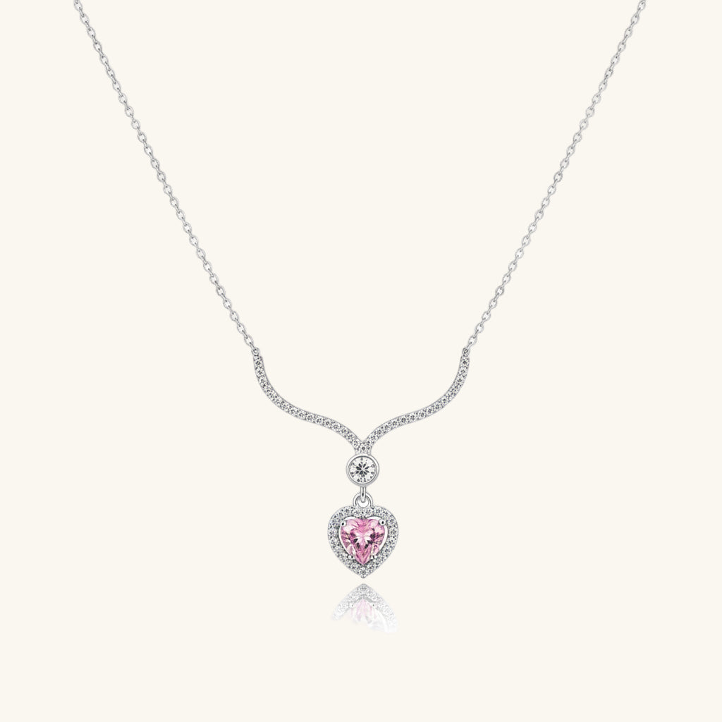 Pink Zircon Heart Women's Silver Necklace