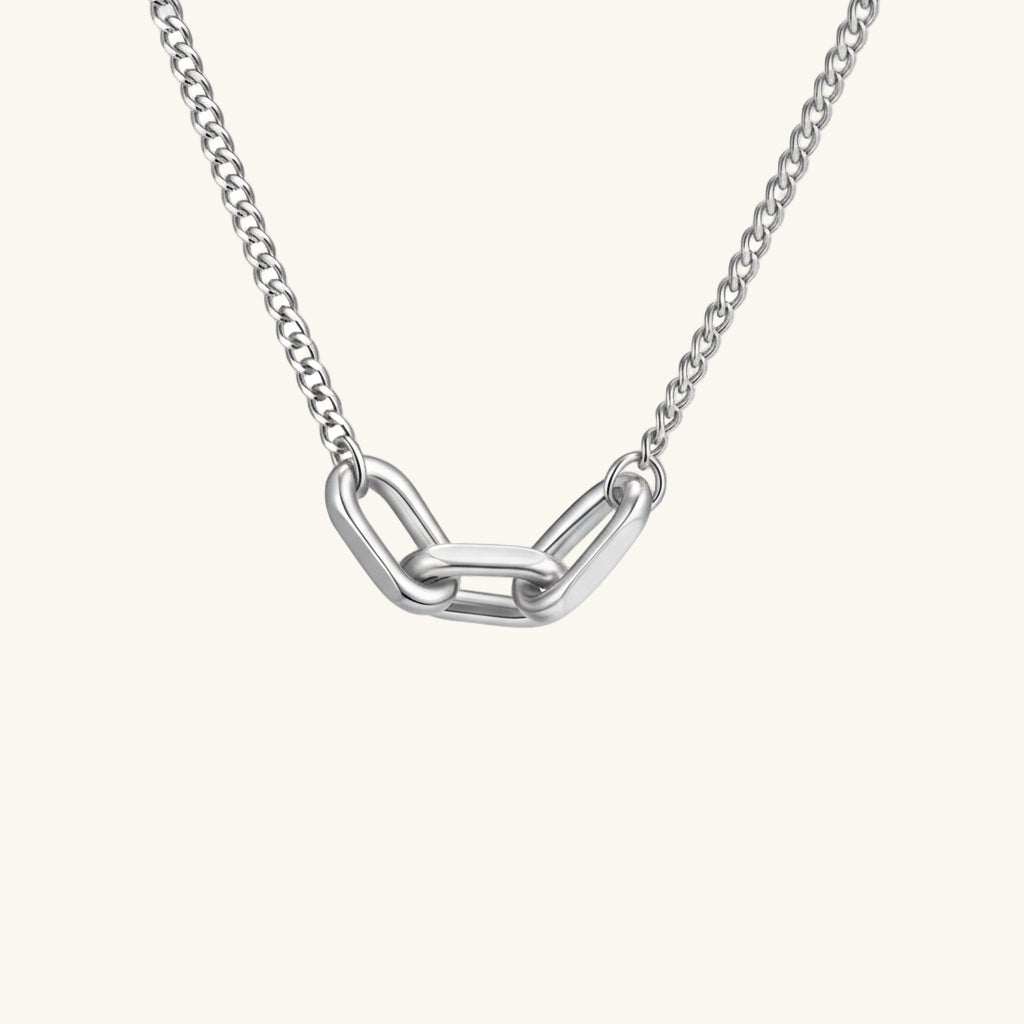 The stainless steel paperclip style links create a strong geometric look while the waterproof finish ensures durability and long lasting shine