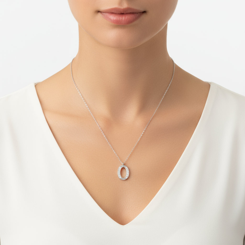 Rhodium Plated O Letter Women's Silver Necklace
