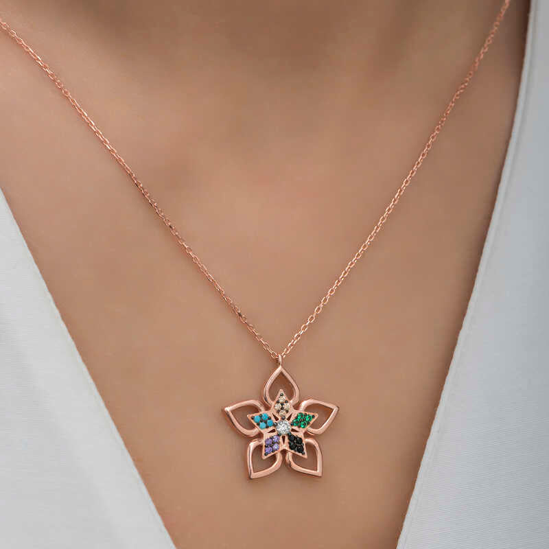 The most special and elegant way to express your feelings to your loved ones is with stylish, colorful, and fragrant flowers you can send. The flower, a classic gift for special occasions, has been reinterpreted with a unique design this time... This colorful stone flower necklace awaits those who want to express their love once more and say "you are a flower." This special design, the flower women's necklace, is crafted from 925 sterling silver. The silver features a rose plating, which helps the women's silver necklace models maintain their shine for a long time and delays tarnishing. The stones on the necklace are zircon. Like all women's silver necklace models, this silver flower women's necklace is handcrafted. Due to silver and precious stones, the stated product weight may vary by ±10%.
