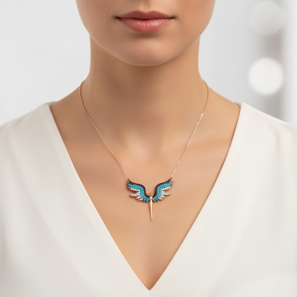Archangel Michael is one of the four great angels in our religion, entrusted with divine duties by God. The name "Mikail" originates from Hebrew, meaning "Who is like God?" Mentioned five times in the Quran, he is also recognized in Judaism as the protector of the Israelites and commander of the heavenly host, often depicted battling evil. This elegant and meaningful necklace makes a perfect gift for birthdays, Valentine's Day, or Mother's Day. Crafted from 925 sterling silver with rose gold plating, it maintains long-lasting shine, transforms silver into a pink hue, and delays tarnishing. Like all silver women's necklaces, this Archangel Michael pendant is entirely handcrafted. Due to silver and precious stones, the stated average weight may vary by ±10%.