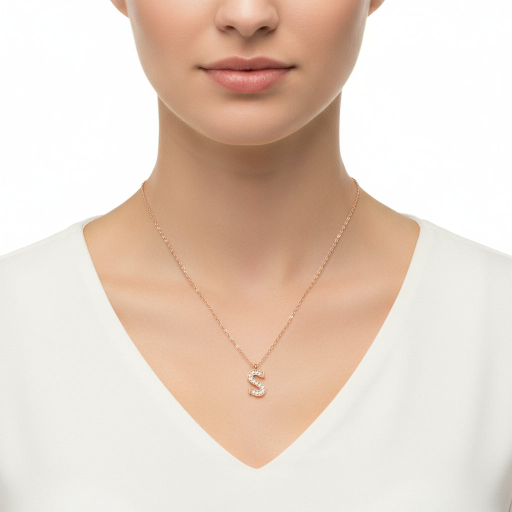 Rose Plated S Letter Women's Silver Necklace