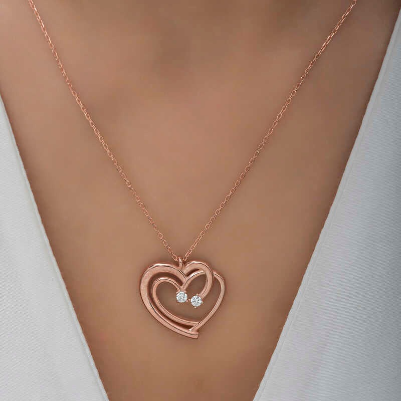 Let your love come to life on your beloved woman's skin with this silver heart-shaped women's pendant that expresses love with its heart pattern. Adorn your loved one's neck with love using this heart-shaped women's pendant model that young lovers and those who feel young can choose for special occasions. This heart-patterned pendant model, which you and your loved ones will enjoy wearing, will be one of the most beautiful gifts for your beloved. The heart-shaped women's pendant model is crafted from 925 sterling silver. It features rose plating over the silver. Silver women's heart pendant models with rose plating maintain their shine for a long time and delay tarnishing. The white stones on the pendant are zircon. The silver chain length averages 45 cm. Like all women's pendant models, the rose plated united hearts women's silver pendant model is handcrafted. Due to silver and precious stones, the stated average product weight may vary by ±10%.