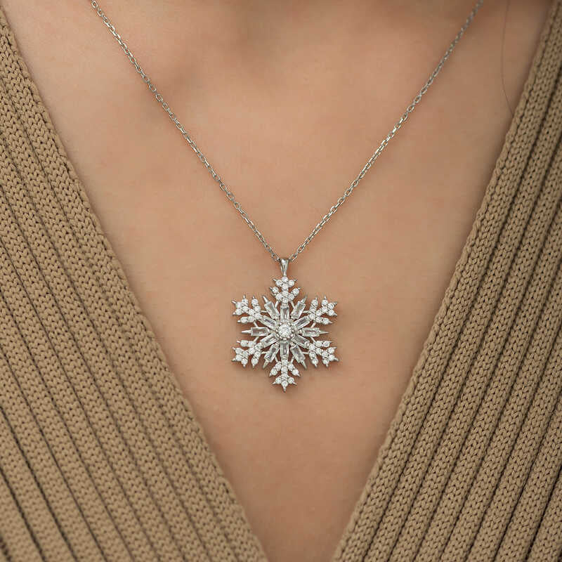 Designed to resemble the brilliance and clarity of women, just like snowflakes. Each snowflake, like women, is unique and precious, making them special. Its elegance has always stood out throughout time. Additionally, it symbolizes how people can live happily together without harming one another, much like snowflakes. This stylish pendant makes an excellent gift choice for birthdays, Valentine's Day, or Mother's Day. Crafted from 925 sterling silver with rhodium plating, which ensures long-lasting shine and delays tarnishing. Like all silver women's pendants, this snowflake pendant is entirely handcrafted. Due to silver and precious stones, the stated average weight may vary by ±10%.