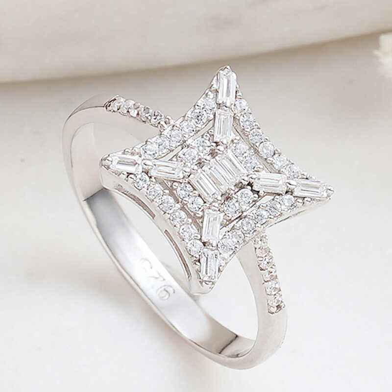 The square zircon stone women's silver ring is a simple and elegant design that you and your loved ones will enjoy wearing. The square zircon stone women's ring is crafted from 925 sterling silver. It features rhodium plating over the silver. Rhodium-plated women's ring models maintain their shine for a long time and their tarnishing is delayed. The stones on the ring are zircon and baguette. Like all women's ring models, the square zircon stone women's ring is also handcrafted. Due to silver and precious stones, the product weight may vary by ±10%.