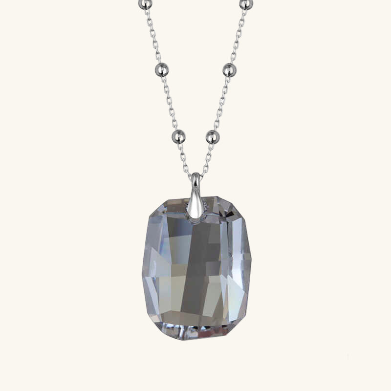 Swarovski Crystal Stone Ball Chain Baguette Women's Silver Necklace