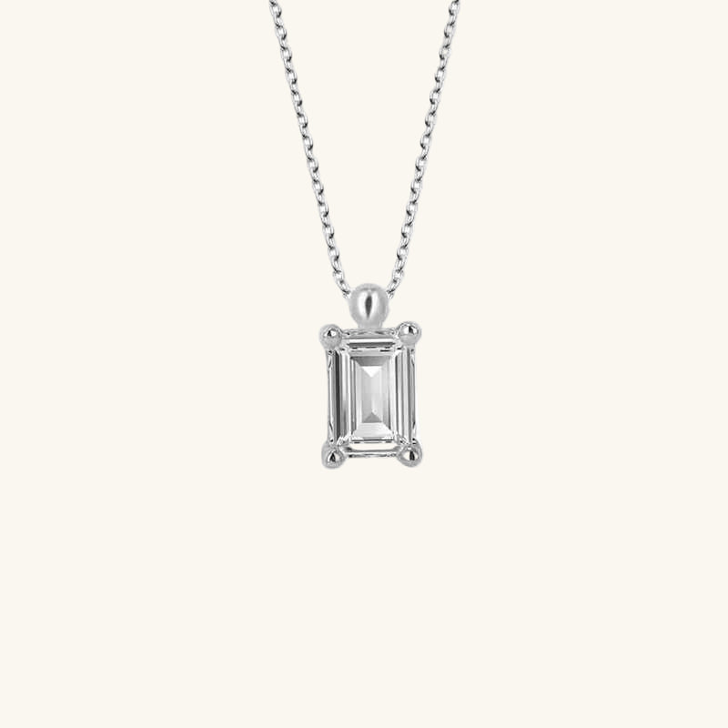 Swarovski Stone Baguette Solitaire Silver Women's Necklace