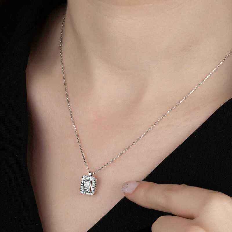 Swarovski stones take their name from the company founded by Daniel Swarovski (1862–1956) in the late 19th century. These are not real diamonds but crystal stones cut with special techniques to achieve a smooth, diamond-like appearance. Swarovski is a globally recognized brand widely used in jewelry. While not a substitute for diamonds, Swarovski adds unique beauty to accessories—being a man-made crystal, whereas diamonds are natural stones with innate brilliance. This necklace features a distinctive design, perfect for daily wear and versatile styling, making it a cherished gift for loved ones. Crafted from 925 sterling silver with rhodium plating, it retains shine longer and resists tarnishing. The stones are glass, and like all silver necklaces, this Swarovski stone baguette model is handmade. Due to silver and precious stones, the stated average weight may vary by ±10%.