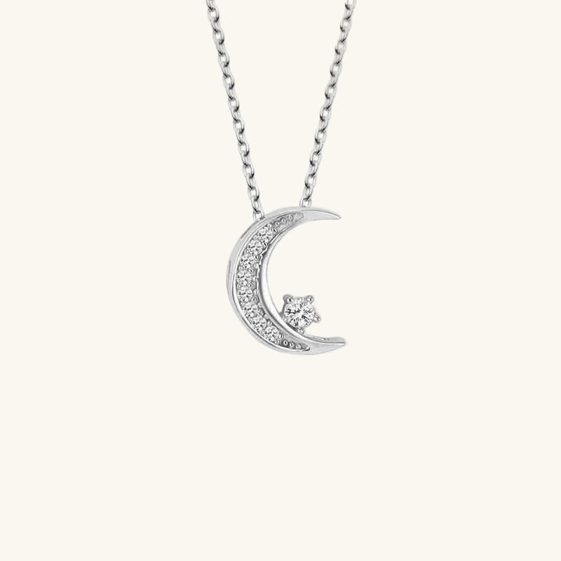 Swarovski Stone Crescent Moon Women's Silver Necklace