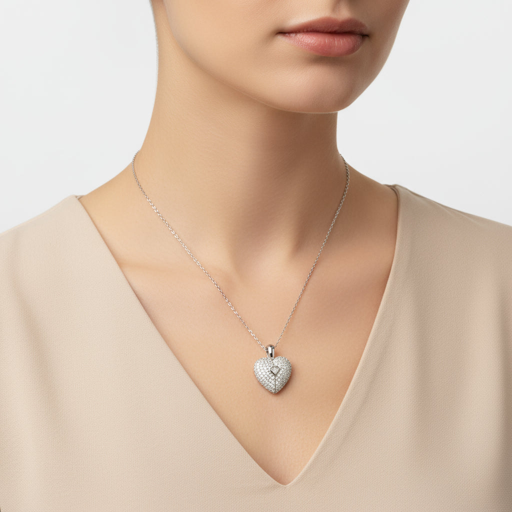 Let your heart speak with a name engraved inside a dazzling heart adorned with zircon stones. The Secret in My Heart Pendant could be one of the best choices for you. Designed to keep your loved one's name, a precious word, or any other expression hidden, the wings covered in white zircon stones are meant to remain closed, embodying the concept of secrecy. Your secrets stay concealed beneath the wings. Among silver pendant designs, this piece stands out for its versatility, suitable for both day and night wear. You can choose it for yourself or as a gift for loved ones. Crafted from 925 sterling silver, the chain length is 45 cm / 17.7165 inches. All our products are handmade. Due to silver and precious stones, the stated average weight may vary by ±10%.