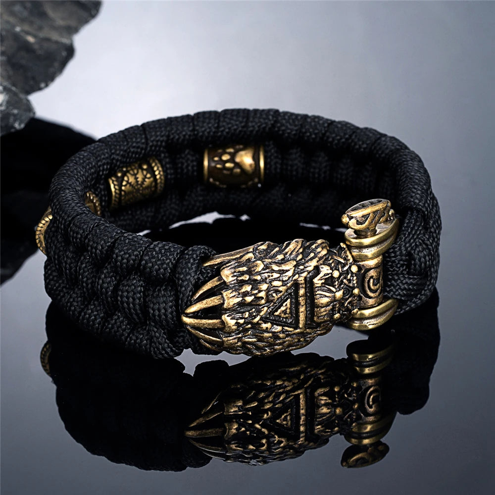 Material Genuine Military-Grade Paracord Rope with a Solid Stainless Steel & Titanium Alloy Bear Claw Clasp Features Waterproof, Tarnish-Free, Hypoallergenic Metal Parts; Ultra-Durable Rope Style Viking, Norse, Berserker, Outdoor, Survival Finishes Available in Antique Bronze, Black, and more Fit Available in 3 sizes (19cm, 21cm, 23cm) for a perfect fit Gender Unisex