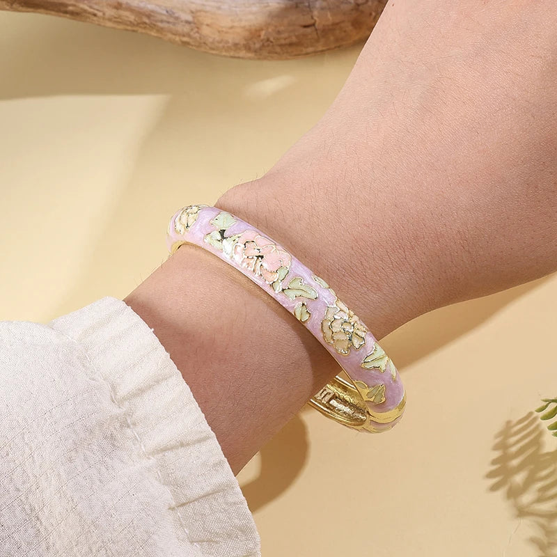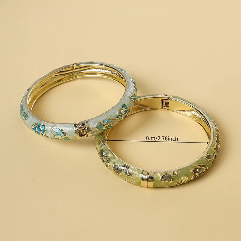 An elegant and timeless design this vintage inspired cloisonné bangle is crafted from durable zinc alloy and decorated with colorful enamel flower motifs