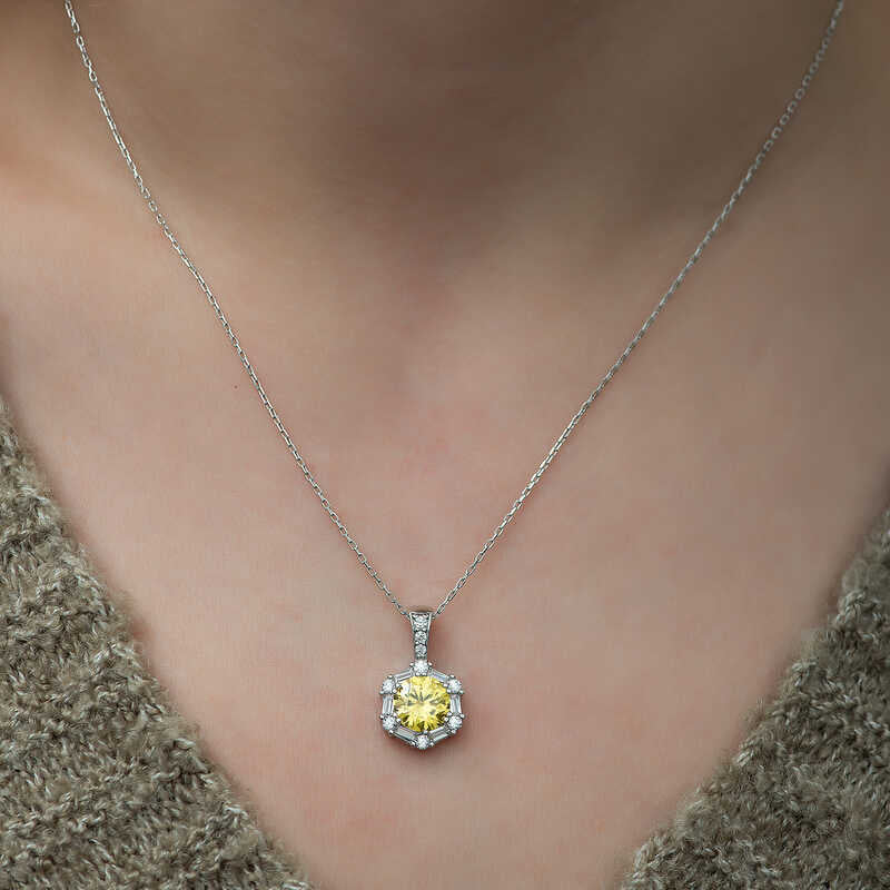 Do you need a necklace that will amplify your sparkle? Or perhaps you saw a necklace somewhere and have been searching for it everywhere? Sometimes it's a necklace, sometimes a ring, or even a bracelet—whatever your need may be, you're in the right place to find your dream piece, no matter your budget. This wheat yellow baguette stone women's silver necklace might be exactly what you're looking for. Crafted from 925 sterling silver, it features rhodium plating that enhances shine and delays tarnishing. Like all silver necklaces, this piece is entirely handmade. Due to silver and precious stones, the product weight may vary by ±10%.